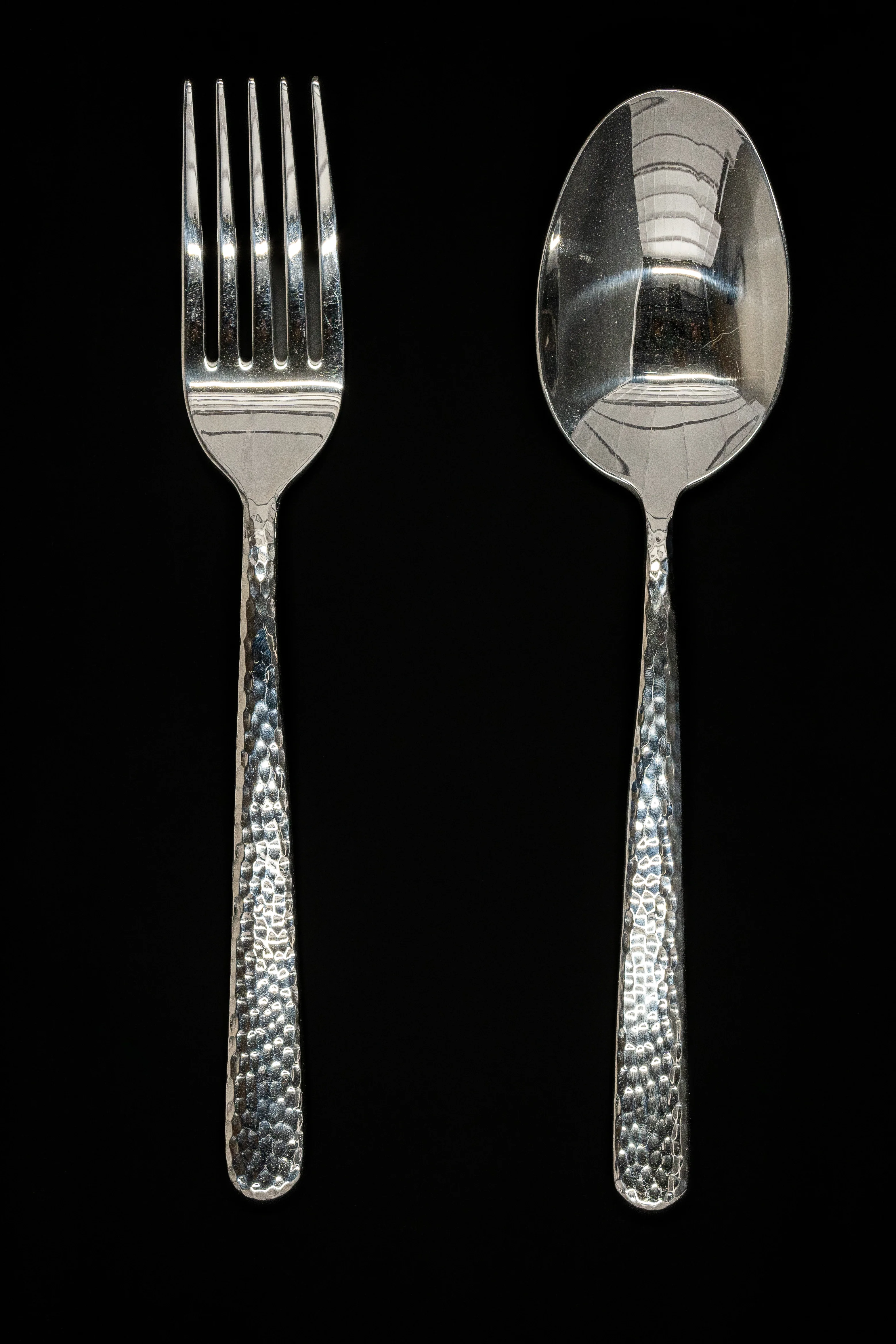 A beautiful, large serving fork with a polished, hammered finish. An elegant serving fork for your holiday table or Sunday dinner.